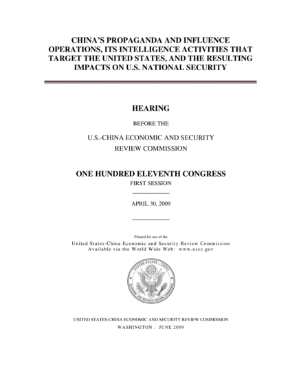 China's Propaganda and Influence Operations, its Intelligence Activities That Target the United States, and the Resulting Impacts on U.S. National Security: Hearing Before the United States-China Economic and Security Review Commission