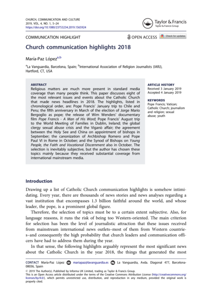 Church, Communication and Culture, volume 4 (2019), pp. 5-24