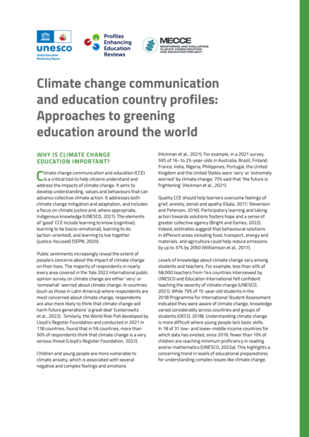 Climate Change Communication and Education Country Profiles: Approaches to Greening Education Around the World