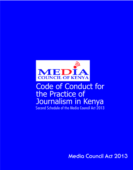 Code of Conduct for the Practice of Journalism in Kenya: Second Schedule of the Media Council Act 2013