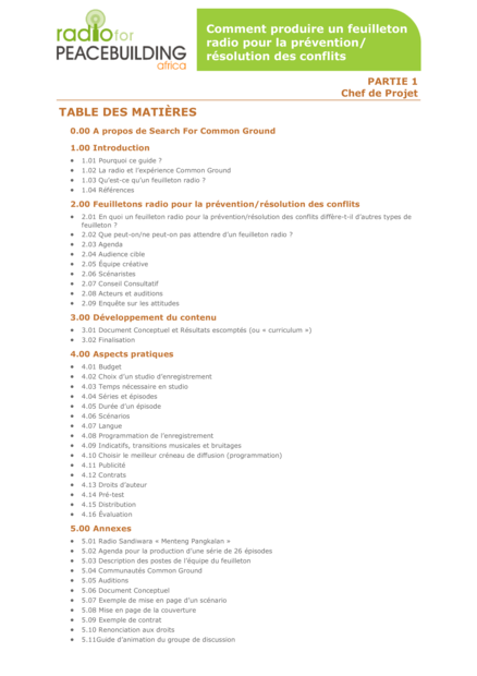 Comment produire un feuilleton radio pour la prévention/résolution des conflicts: Partie 1 - chef de projet