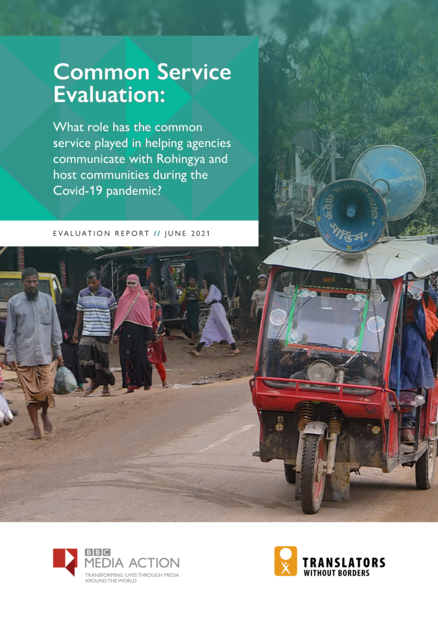 "The common service for community engagement and accountability, through its consortium members BBC Media Action and Translators Without Borders (TWB), aims to help agencies and sectors working to support Rohingya refugees and local host communities living in Cox’s Bazar, Bangladesh to achieve this by providing a range of specialist, technical support services. Movement restrictions implemented since the beginning of the pandemic meant that humanitarian programmes were reduced to essential services only in the Rohingya camps, community engagement efforts were restricted, and many initiatives planned for the host community were cancelled. The common service adapted its activities in a number of ways: carrying out online training sessions with practitioners; conducting telephone research with communities; shifting the focus of communication products to meet communities’ information needs around Covid-19; and working with partners to use communication channels which would ensure information was still able to reach communities [...] This evaluation has shown that practitioners feel the common service played a critical role in getting important information to Rohingya communities during this time. It did this through:
