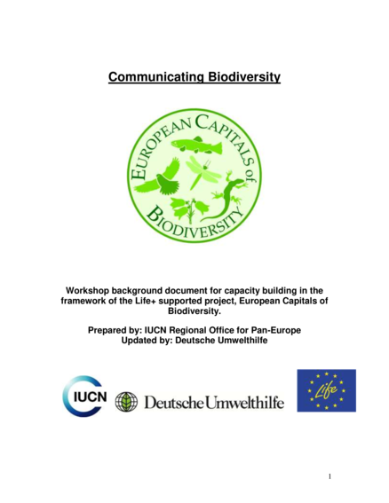 Communicating Biodiversity: Workshop Background Document for Capacity Building in the Framework of the Life+ Supported Project, European Capitals of Biodiversity