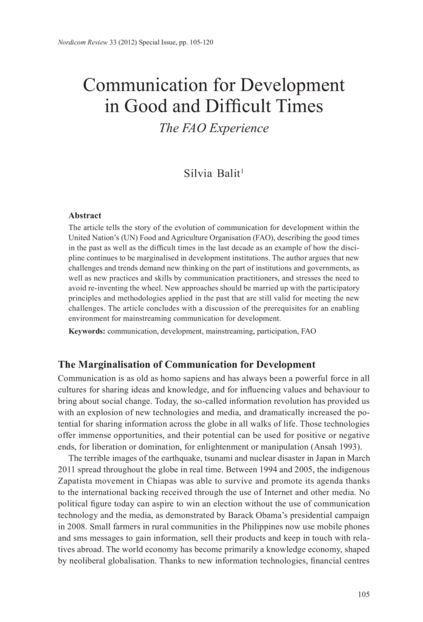 Communication for Development in Good and Difficult Times: The FAO Experience