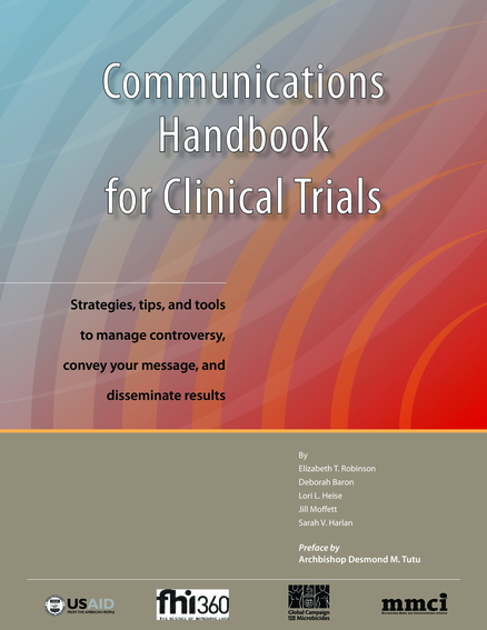 "This handbook is designed to serve the needs of anyone who conducts, plans, or implements clinical trials—especially trials that evaluate new drugs or interventions in a community setting. We want to make your job easier, whether you are a researcher, a study coordinator, or a communications professional. Objectives: provide practical guidance to clinical trial staff and research partners on how to anticipate and respond to the special communications challenges posed by the conduct of clinical research in resource-limited settings; share lessons learned from case studies of actual experiences running trials in Africa, Asia, Latin America, the United States and Europe; supply hard copy and electronic versions of diagnostic tools, sample templates, and model examples of communications plans and materials that sites can adapt for use in their communications planning and implementation." (Page 2)