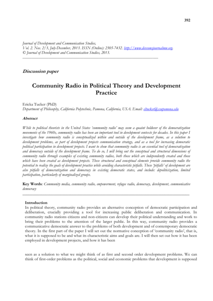 Journal of Development and Communication Studies, volume 2, issue 2-3 (2013), pp. 392-420