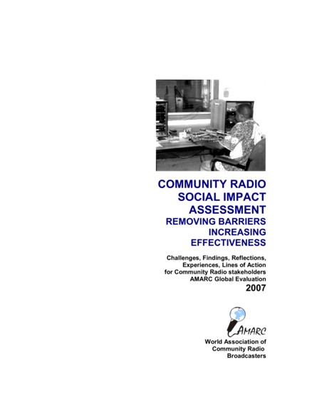Community Radio Social Impact Assessment: Removing Barriers Increasing Effectiveness. Challenges, Findings, Reflections, Experiences, Lines of Action for Community Radio Stakeholders. AMARC Global Evaluation 2007