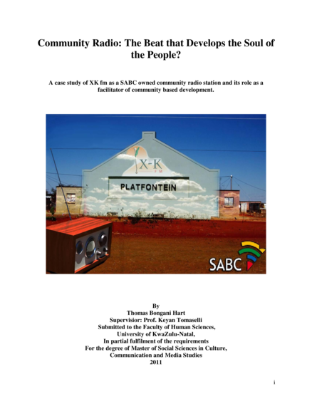 Community Radio: The Beat That Develops the Soul of the People? A Case Study of XK FM as a SABC Owned Community Radio Station and its Role as a Facilitator of Community Based Development