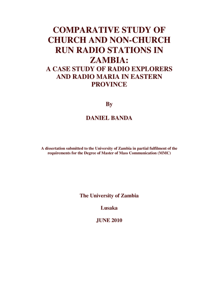 Comparative Study of Church and Non-Church Run Radio Stations in Zambia: A Case Study of Radio Explorers and Radio Maria in Eastern Province