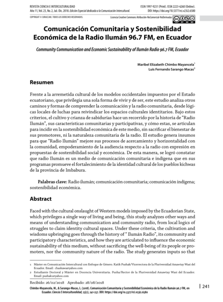 Comunicación comunitaria y sostenibilidad económica de la Radio Ilumán 96.7 FM, en Ecuador