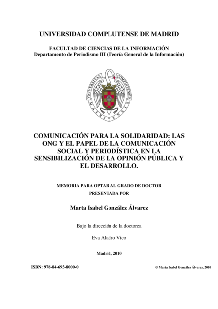 Comunicación para la solidaridad: Las ONG y el papel de la comunicación social y periodística en la sensibilización de la opinión pública y el desarrollo
