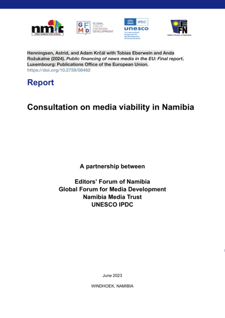 Windhoek: Editor's Forum of Namibia; Global Forum for Media Development (GFMD); Namibia Media Trust; UNESCO (2023), 20 pp.