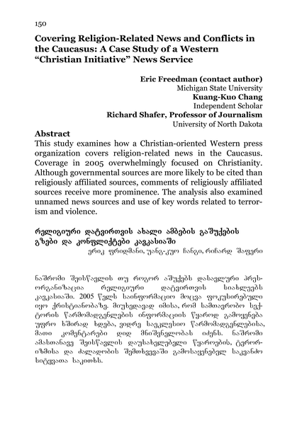 Covering Religion-Related News and Conflicts in the Caucasus: A Case Study of a Western “Christian Initiative” News Service