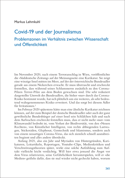 Covid-19 und der Journalismus: Problemzonen im Verhältnis zwischen Wissenschaft und Öffentlichkeit