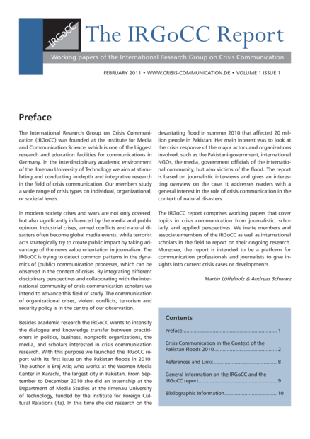 Ilmenau: Ilmenau University of Technology; International Research Group on Crisis Communication (2011), 10 pp.