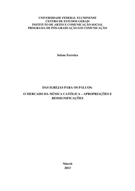 Das igrejas para os palcos: O mercado da música católica. Apropriações e ressignificações
