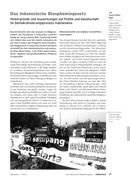 "Rezente Berichte über den Zustand von Religionsfreiheit und Pluralismus in Indonesien zeichnen häufig ein wenig schönes Bild. Gleichzeitig findet sich vielfach aber auch die Ansicht, Indonesien als ein Land zu sehen, das erfolgreich einen Demokratisierungsprozess in Gang setzen konnte und daher als Modell für einen demokratischen und moderaten Islam dienen kann – trotz all der damit verbundenen religiösen und gesellschaftlichen Probleme in Indonesien." (Abstract)