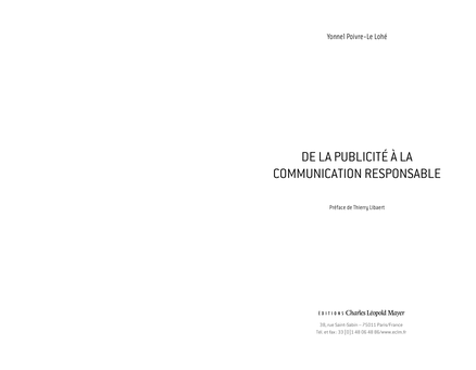 "Loin d’être une simple fonction support qui ne servirait qu’a` faire connaître, la communication des organisations est un maillon essentiel du système économique. Elle influence profondément l’activité même de ceux qui communiquent mais aussi les attentes de ceux qui sont exposés aux messages. Entre le greenwashing (littéralement «blanchiment écologique d’image») qui remet en cause la conversion écologique de la société, et une autorégulation inefficace, la communication est devenue un monstre détesté et autocentré. Mais est-ce étonnant de la part d’un métier dont deux des actes fondateurs eétaient une grève à briser et des cigarettes à faire brandir par les suffragettes comme des «flambeaux de la liberté»? En réaction aux pratiques les plus détestables de la communication-manipulation, est ainsi lentement en train d’émerger la communication responsable. Ne se limitant pas à la bonne utilisation des arguments du développement durable, elle consiste en une prise de conscience de ses impacts négatifs (environnementaux, sociétaux) et en un effort pour les limiter, dans l’intérêt de tous." (Description de la maison d'édition)