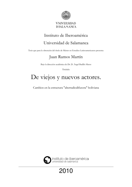 Salamanca: Master Thesis Instituto de Iberoamérica Universidad de Salamanca (2010), iv, 86 pp.