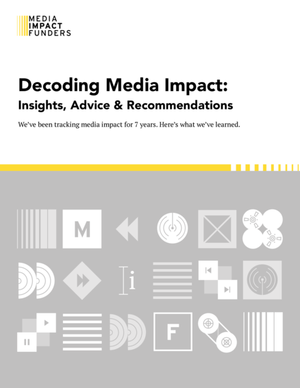 "This guide is meant to serve as a practical resource for funders who want to understand where to start. Informed by feedback from our network, it represents a synthesis of the past seven years of work we’ve done in the impact space, and includes examples of successful media impact evaluation, tools and frameworks for assessment, and the challenges of defining and measuring impact in a rapidly-shifting media landscape. Our years of research have led us to four key insights: 1. There are many different frameworks for measuring media impact for different areas of practice. 2. Funders should be mindful of power dynamics, and thoughtful in determining appropriate impact strategies with their grantees. 3. Digital analytics tools provide a wealth of useful data, but grantees require financial and logistical support in implementing them. 4. There are opportunities for funders to collaborate with each other to share best practices and increase collective impact." (Executive summary)