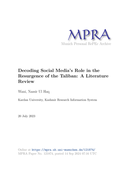 Decoding Social Media’s Role in the Resurgence of the Taliban: A Literature Review