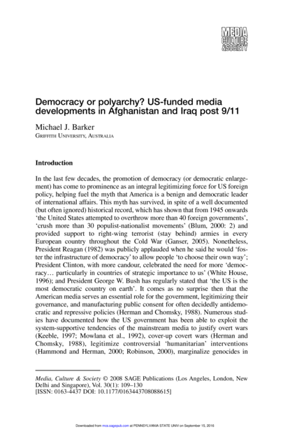 Democracy or Polyarchy? US-Funded Media Developments in Afghanistan and Iraq Post 9/11