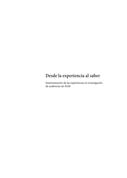 Desde la experiencia al saber: Sistematización de las experiencias en investigación de audiencias de ALER