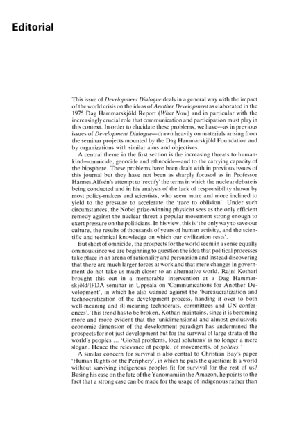 Development Dialogue (Dag Hammarskjöld Foundation), issue 1-2 (1984), pp. 73-140