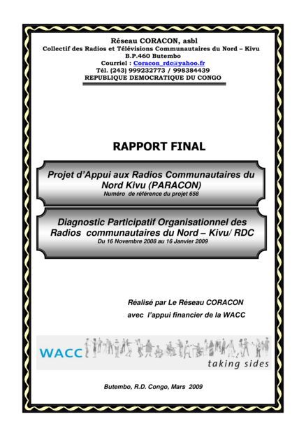 Butembo (R.D. Congo): Réseau Coracon; World Association for Christian Communication (WACC) (2009), 62 pp.