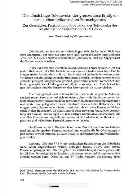 Communicatio Socialis, volume 25, issue 4 (1992), pp. 322-351
