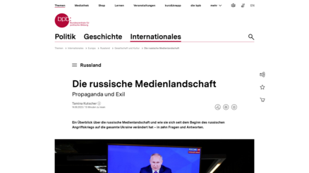 "Ein Überblick über die russische Medienlandschaft und wie sie sich seit dem Beginn des russischenAngriffskriegs auf die gesamte Ukraine verändert hat – in zehn Fragen und Antworten." (Einführung)