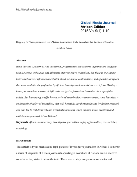 Global Media Journal - African Edition, volume 9, issue 1 (2017), pp. 1-10