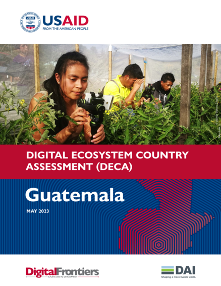 "The Guatemala DECA report presents the findings and recommendations of the Guatemala DECA. It outlines the key aspects of Guatemala’s digital ecosystem and provides nine recommendations for creating a more inclusive, safe, and enabling environment. Guided by USAID/Guatemala priorities: i) partner with the Government of Guatemala and other stakeholders to increase economic prosperity, inclusion, and stability in areas with high irregular migration; ii) partner with the Government of Guatemala and other stakeholders to strengthen effective and accountable governance to improve quality of life and reduce irregular migration; and iii) partner with the Government of Guatemala and other stakeholders to improve justice and security to reduce irregular migration, the DECA process included desk research, consultations with USAID/Guatemala technical offices, 76 key informant interviews with stakeholders from civil society, academia, and the private and public sectors, and five focus group discussions with USAID project participants. Key findings include: Guatemala does not have a central strategy or policy for the digitalization of government services or systems; while Guatemala is home to relatively high network coverage, gaps in internet use remain and innovative solutions face regulatory barriers; the digital divide persists across gender, geography, income, education and literacy, and ethnicity, and was exacerbated by the COVID-19 pandemic; digital rights are insufficiently protected and disinformation and harassment are present in the online space; over the last decade, the Government of Guatemala adopted long-term policies to support the development of the digital economy; progress is unclear but data show there has been some impact on financial inclusion; although in its early days, there is unprecedented growth in Guatemala’s startup ecosystem, specifically FinTech." (https://www.usaid.gov/digital-development)