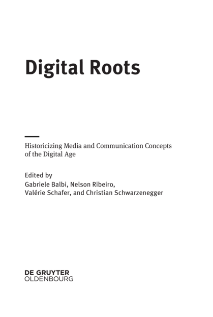 Digging into Digital Roots. Towards a Conceptual Media and Communication History / Gabriele Balbi, Nelson Ribeiro, Valérie Schafer und Christian Schwarzenegger, 1