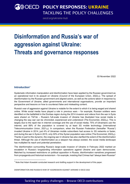 Disinformation and Russia’s war of aggression against Ukraine: Threats and governance responses