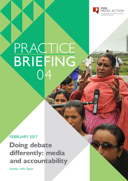 "This paper discusses a number of ways in which media plays a part in increasing accountability. It draws on quantitative and qualitative data from BBC Media Action’s work in nine countries. It finds that: media can influence accountability by empowering people, creating opportunities for constructive public debate and influencing power; development donors and practitioners need to integrate media more fully into their empowerment and accountability strategies. In 2017 BBC Media Action will complete a six year, multi-country project to support improved accountability through public dialogue. Partnering with over 135 media and civil society organisations, BBC Media Action supported broadcast programmes that have reached more than 190 million people. In 2016, the governance programmes supported by BBC Media Action reached an average of 37% of the adult population of the countries in which they were broadcast. This paper seeks to explore how the lessons from that support can contribute to the wider empowerment and accountability agenda, and to set out challenges for the future of media, empowerment and accountability work." (BBC Media Action website)