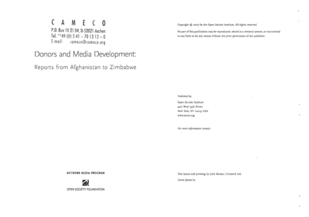 Donors and Media Development: Reports from Afghanistan to Zimbabwe