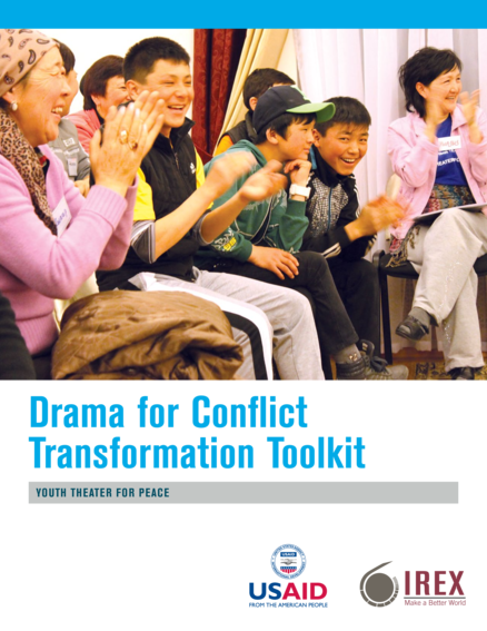 "This toolkit is designed to introduce young people to an innovative theater methodology that creatively examines and transforms conflict. After working through the exercises in this manual, youth will be equipped to lead community dialogue as agents of positive change. The facilitation guide and theater curriculum that follow were created for the USAID-funded Youth Theater for Peace (YTP) project. Since its launch in 2010, YTP has promoted sustainable conflict prevention at the community level through theater. YTP trained 284 youth and adults in conflict mitigation through the use of interactive theater in four conflict-affected regions of Kyrgyzstan. The result was the creation of 33 schoolbased drama clubs, which reached more than 50,000 audience members. Youth in the YTP program engage with each other and their communities through theater activities based on Drama for Conflict Transformation (DCT), a participatory theater methodology in which youth develop short plays based on conflict issues and present them to their communities in interactive performances." (Introduction)