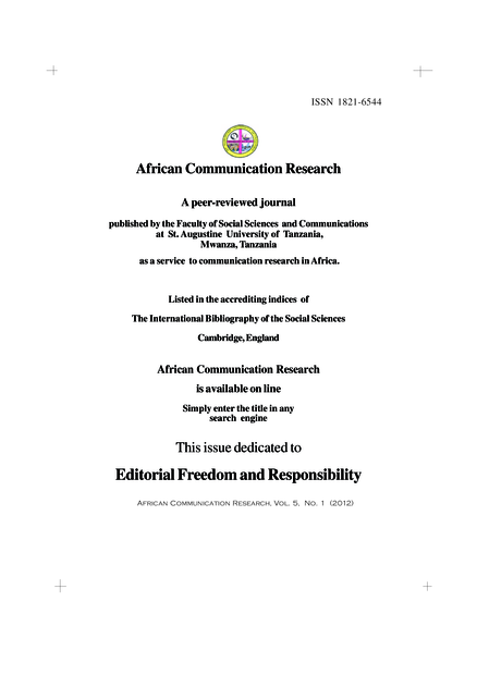 African Communication Research (St. Augustine University Mwanza), volume 5, issue 1 (2012), pp. 1-137