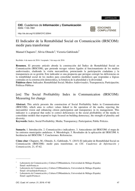 CIC: Cuadernos de Información y Comunicación, volume 21 (2016), pp. 47-62