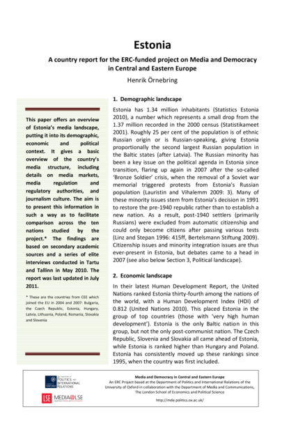 Oxford; London: Department of Politics and International Relations University of Oxford; Department of Media and Communications London School of Economics and Political Science (2011), 32 pp.