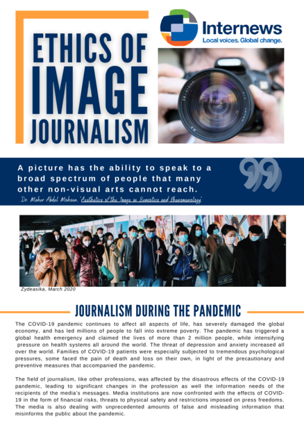 "For photo and video journalists, the COVID-19 pandemic has raised difficult questions regarding how they show the grief of the victims and survivors, and the courage of medical workers to illustrate their stories and show the deadly impact of the virus, without exploiting grief and without inserting themselves into crisis situations where they are not welcome. This guidance document examines the ethical issues of producing visual coverage of the pandemic and offers some rules journalists can follow to help ensure they do not cross the line from professionalism to sensationalism." (Publisher description)