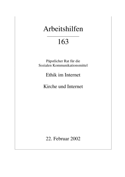 Ethik im Internet; Kirche und Internet. Mit Anhang: Botschaft zum 36. Welttag der sozialen Kommunikationsmittel 2002