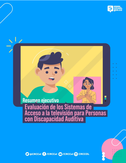 "Este documento está dividido en seis secciones, entre las cuales está la presente introducción, que incluye la matriz de consistencia que permitió establecer los objetivos orientadores del estudio, y continúa con la sección de análisis de los estándares e implementación de sistemas de acceso desde la perspectiva internacional. En la tercera sección se presenta la caracterización de la población con discapacidad auditiva en Colombia, a partir de las variables asociadas a su información sociodemográfica, así como estadísticas sobre los medios de comunicación utilizados por este grupo poblacional, los canales y sistemas de acceso preferidos y las condiciones de los hábitos de consumo de los medios audiovisuales. Posteriormente, se brinda un análisis de la percepción sobre la satisfacción y efectividad de la implementación de los sistemas de acceso desde el punto de vista de la población con discapacidad auditiva; sigue, en la quinta sección, una breve descripción de la implementación en Colombia, considerando la experiencia de los operadores del servicio público de televisión, así como un resumen de los costos de implementación de dichos sistemas. Por último, se presenta una síntesis de los aspectos más destacados del estudio, con los elementos con mayor relevancia para brindar un panorama de los sistemas de acceso en Colombia." (Introducción, página 2-3)