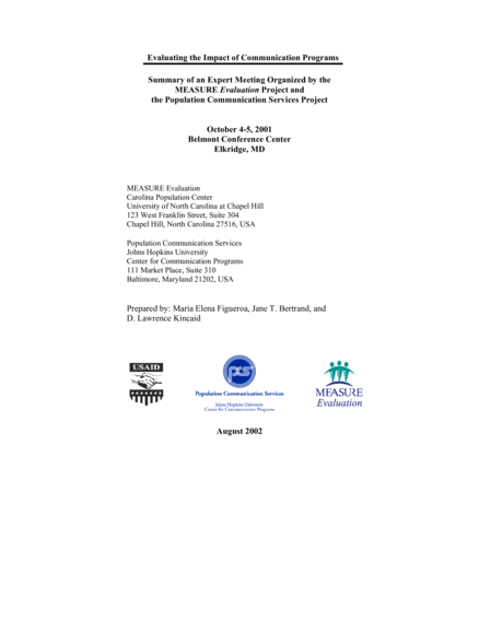 Evaluating the Impact of Communication Programs: Summary of an Expert Meeting Organized by the MEASURE Evaluation Project and the Population Communication Services Project