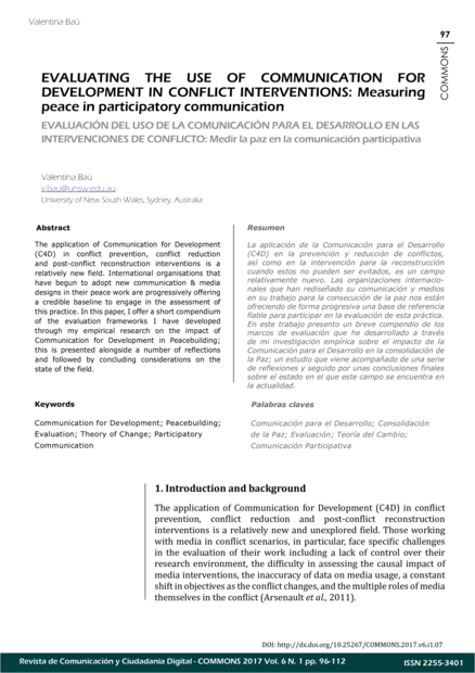 Evaluating the Use of Communication for Development in Conflict Interventions: Measuring Peace in Participatory Communication