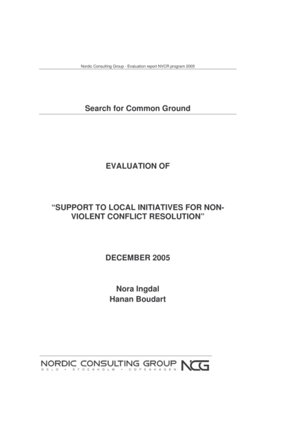 Oslo: Nordic Consulting Goup (NCG); Search for Common Ground (2005), 85 pp.