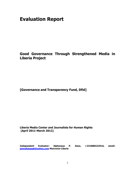 Evaluation Report: Good Governance Through Strengthened Media in Liberia Project