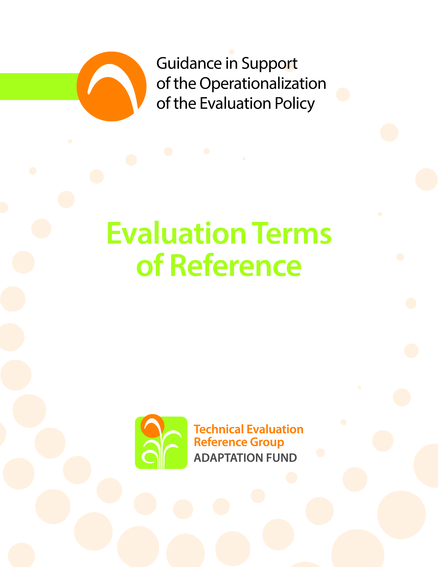 "This guidance note covers Terms of Reference (ToR) guidance for all levels and types of evaluation outlined in the Adaptation Fund’s Evaluation Policy, including baseline studies and midterm reviews. While the emphasis is on developing ToRs for evaluation purposes, the ToR guidance can apply to other activities [...]" (Page 2)