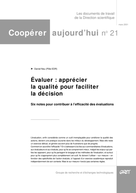 Évaluer: Apprécier la qualité pour faciliter la décision. Six notes pour contribuer à l'efficacité des évaluations